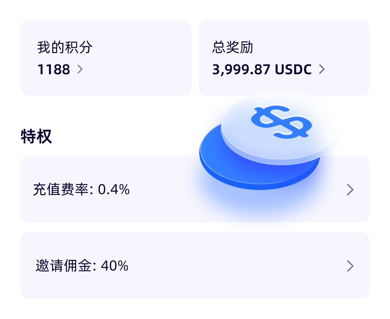 通过充值、邀请好友和SFP质押积累积分并解锁更多专属特权10
